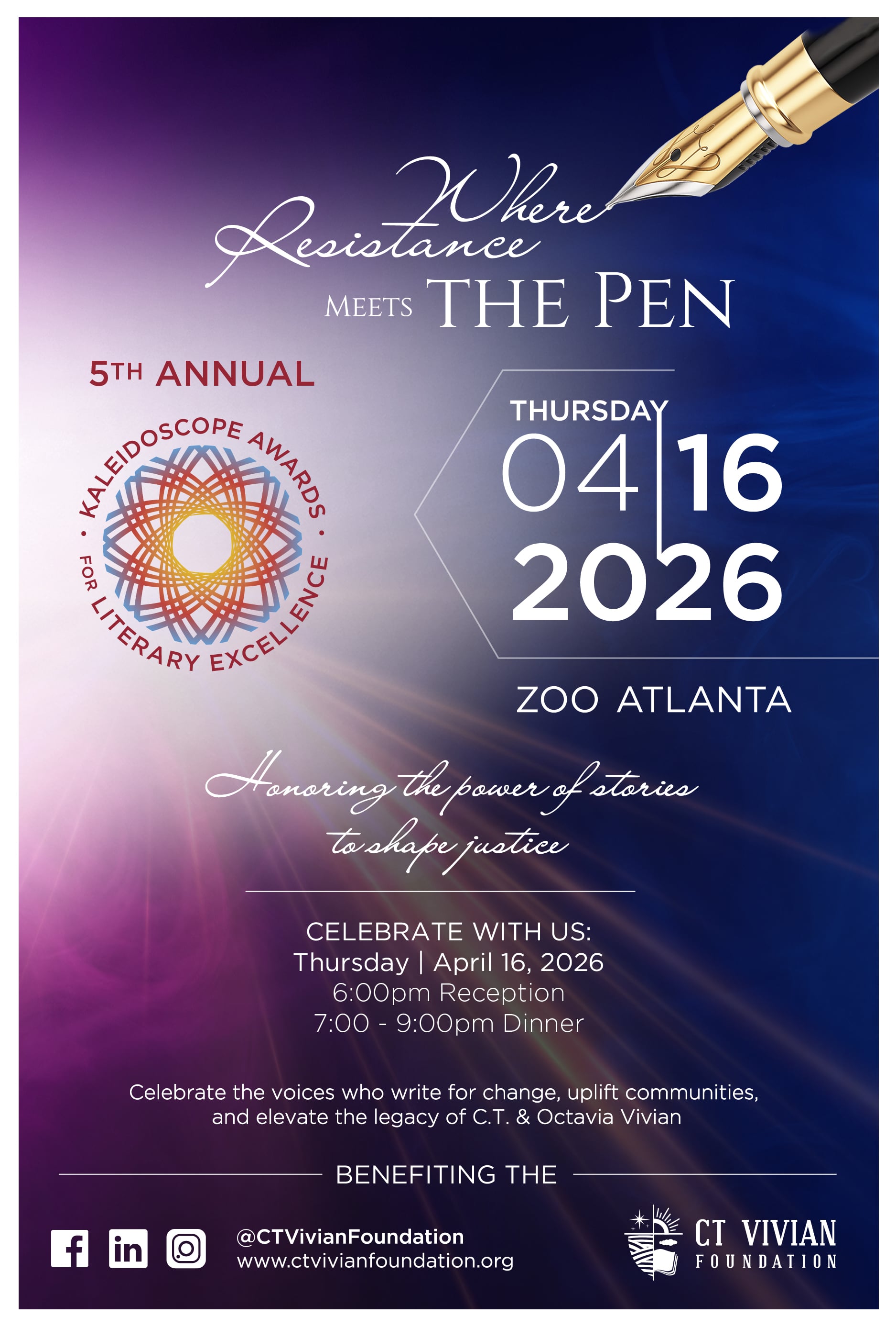 C.T. and Octavia believed in the power of literature to transform minds and elevate one’s understanding of who we are, who we have been, and who we have the potential to be as African Americans. They also believed in supporting students whose passions and actions have the potential to further the impact of literary work. To honor their legacy, C.T. Vivian Foundation will provide scholarships to college bound high school students and college students who aspire to become writers and have a passion for writing about the African American experience through poetry, history, journalism, fiction, and all other genres of literature. Over the past three years, the Scholarship Program has awarded $60,000 in scholarship money.